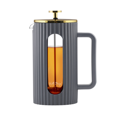 Vialli Design Livio je French Press aparat za pripremu kafe i čaja koji spaja funkcionalnost i eleganciju, ističući se kao savršen dodatak svakom druženju uz omiljeni napitak. Napravljen je od borosilikatnog stakla koje je smešteno u čvrst i estetski oblikovan plastični držač.